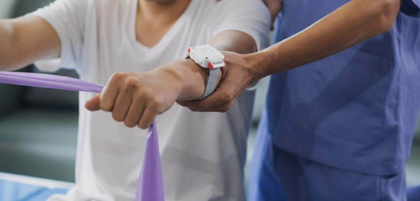 The wearable is designed to be comfortable, aesthetically pleasing, and emotionally empathetic, becoming a companion that motivates the patient to follow their exercise plan.